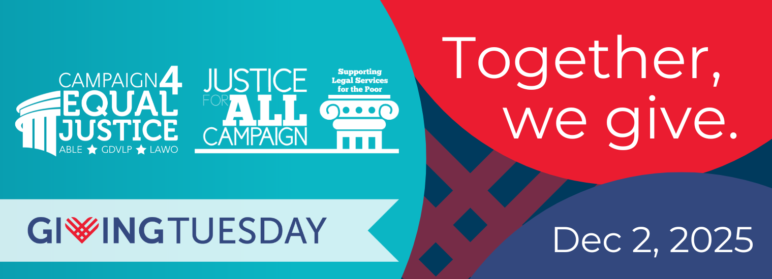 Within each of these organizations, clients just like Alice, Lana, and more reach out for help. They simply need a hand up to be able to move forward. Your gift helps those that need it the most. Your help enables the quality legal staff of all three organizations to touch the lives of so many and make a positive impact. Take the time today to support the work that ABLE, LAWO, TBA, and the GDVLP do each day. Your gift will help close the justice gap and help those that need it the most.